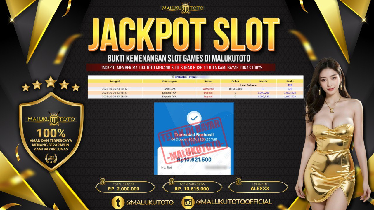 Selamat kepada User id : ALE*** Telah berhasil mendapatkan kemenangan besar pada permainan SLOT SUGAR RUSH kemenangan Sebesar Rp.10,615,000, Setelah mengisi formulir withdraw dengan kurung waktu hanya 3 – 5 menit pihak malukutoto sudah melakukan transfer kepada pemilik Userid dan dana sudah dapat di cairkan oleh pemenang. Bukti pembayaran yang kami berikan merupakan bukti pembayaran yang SAH / VALID yang langung di dapatkan melaui tanda transfer transaksi dari Bank yang di tuju.